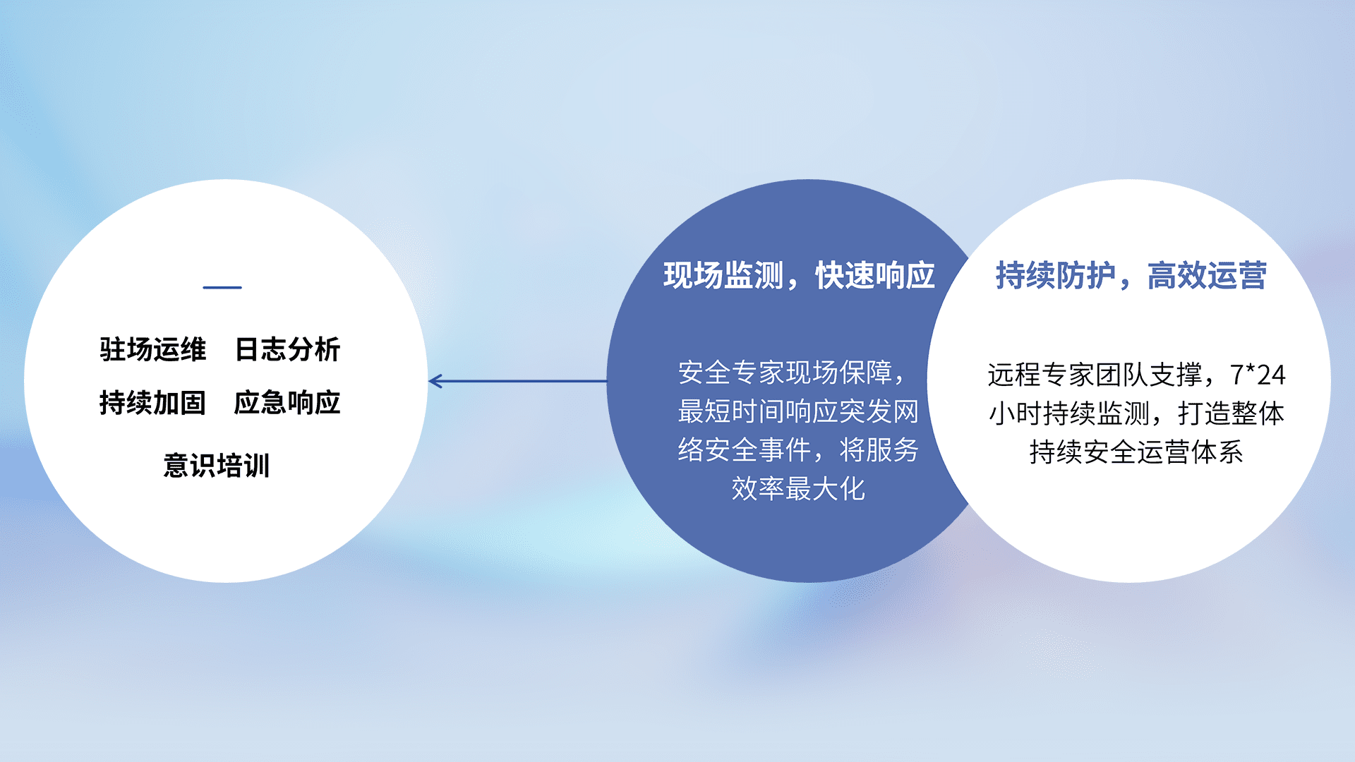 针对客户行业特性,,,提供专属的一站式安全管理服务,,帮助客户全面感知网络空间威胁,,通过安全专家的线上、、、、线下防护支持,,,实现风险闭环,,,,将安全保障常态化,,,,为客户打造常态化安全运维运营服务。。。。